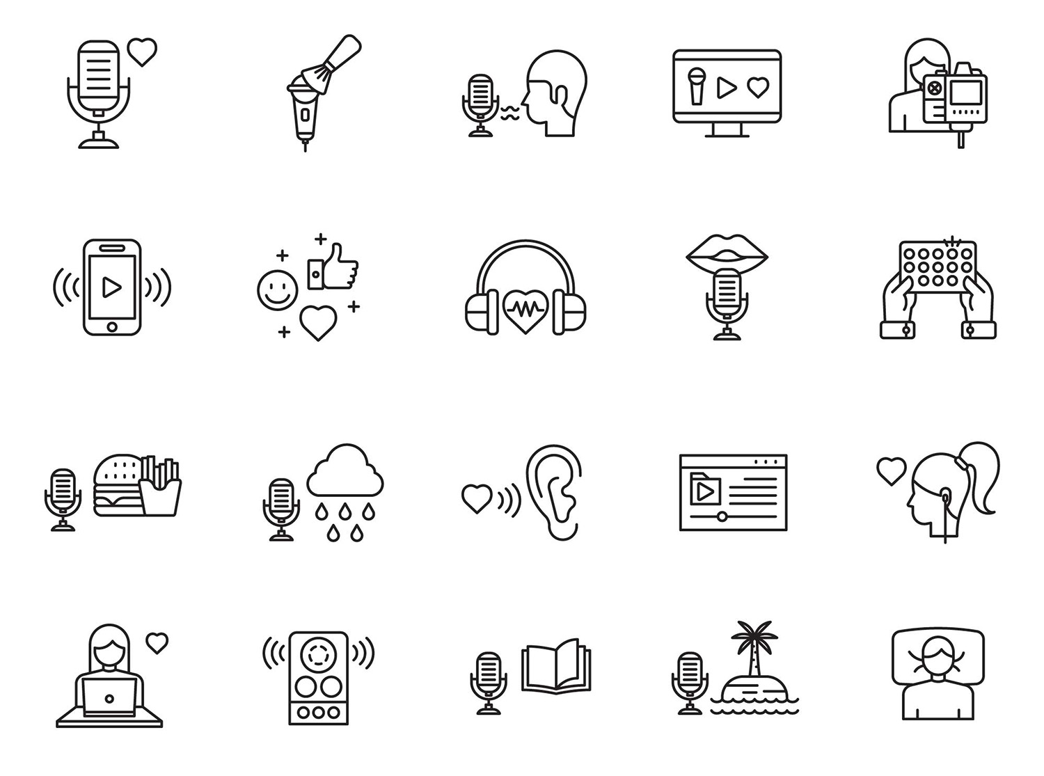 20 ASMR Vector Icons is a set of 20 vector monochrome icons that depict different aspects and subjects related to ASMR. You can use this set to implement any of your design projects on the relevant topics. Use this set to create posters, branding, invitations, cards, clothing prints, and more.