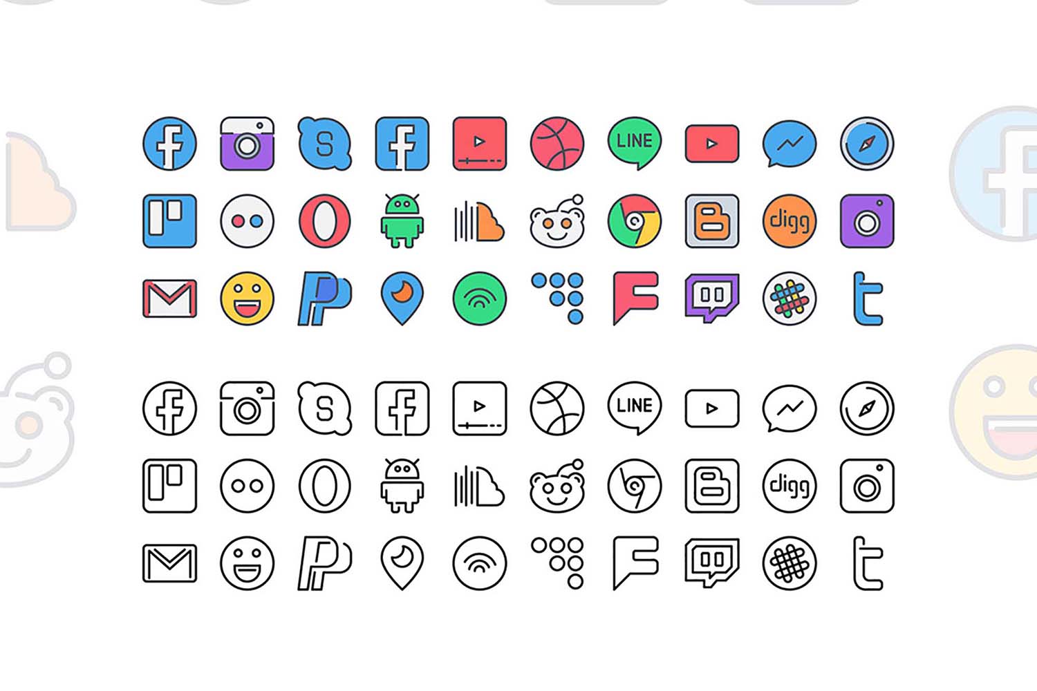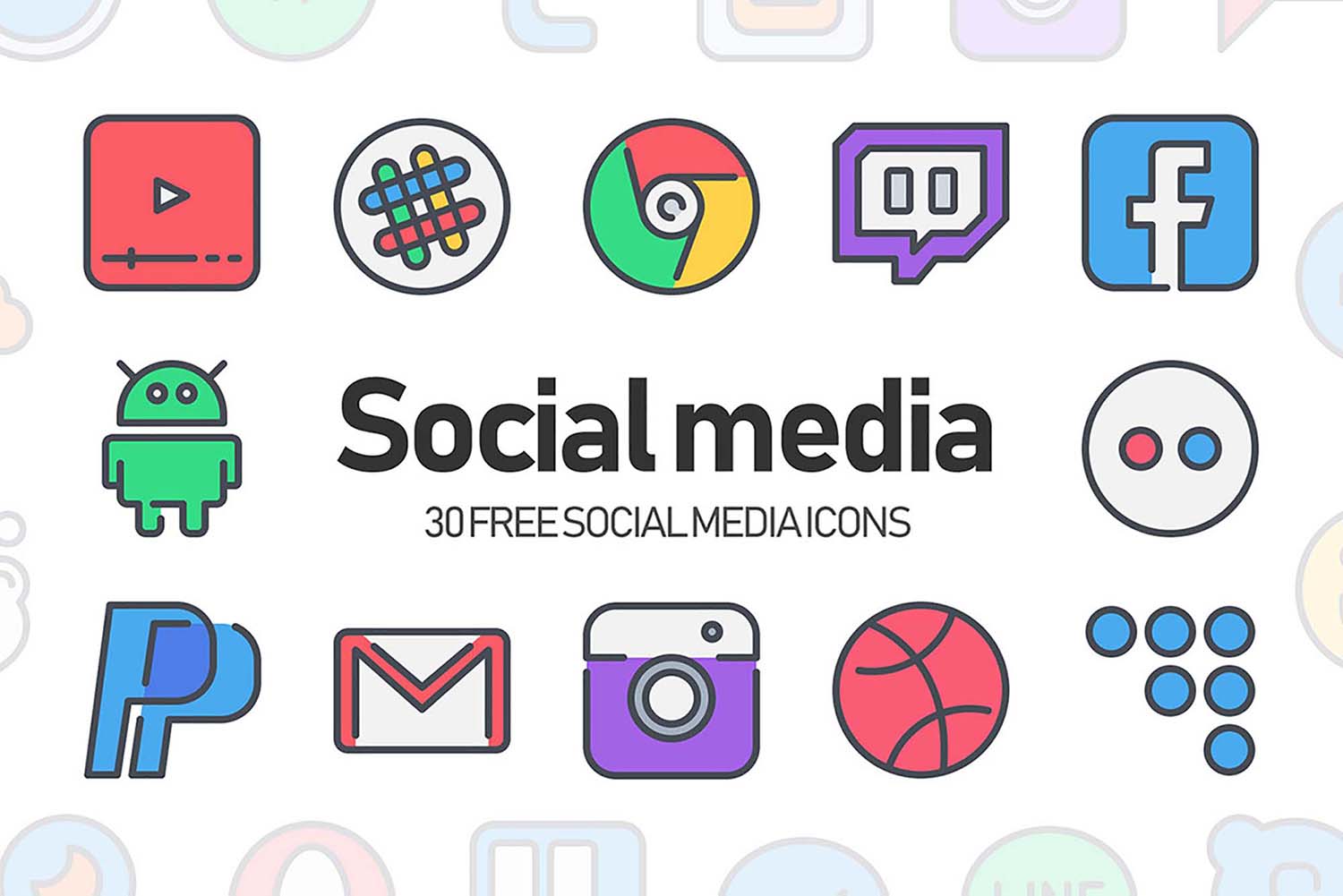 30 Free Social Media Icons is a set of 30 high-quality color in and monochrome vector icons of various social media projects and messengers. You can use this kit to create various design projects related to communication on the Internet, as well as in the development of a graphical interface for mobile applications and websites.