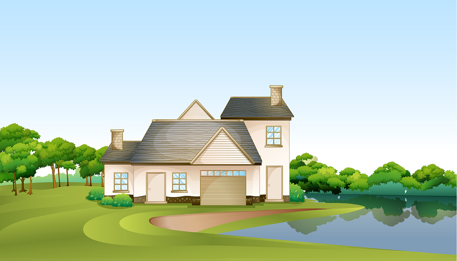 A Big House at the Forest near the River Illustration is a beautiful vector illustration that depicts a big house and gives a spring mood. This illustration is very well suited for creating various spring-themed design projects. Use this illustration to create travel posters, branding, invitations, cards, apparel and pillow prints, and more.