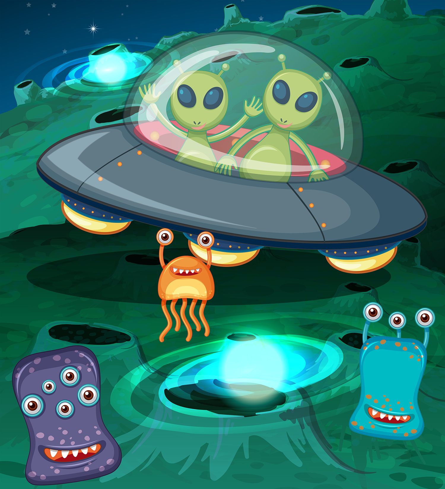 Alien UFO Free Vector Illustration is a beautiful vector illustration that depicts an alien. This illustration is very well suited for creating various design projects. Use this logo to create posters, branding, invitations, cards, clothing and pillow prints, etc.