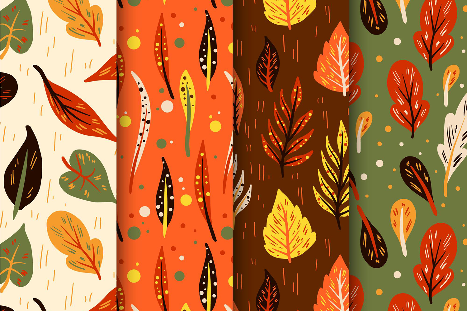Autumn Pattern Collection is an interesting high-quality set of 4 patterns describing the autumn, the autumn mood in autumn colors. This set is perfect for creating various autumn-themed design projects. These can be posters, cards, invitations, flyers, elements for the graphical interface of mobile applications, prints, and more.