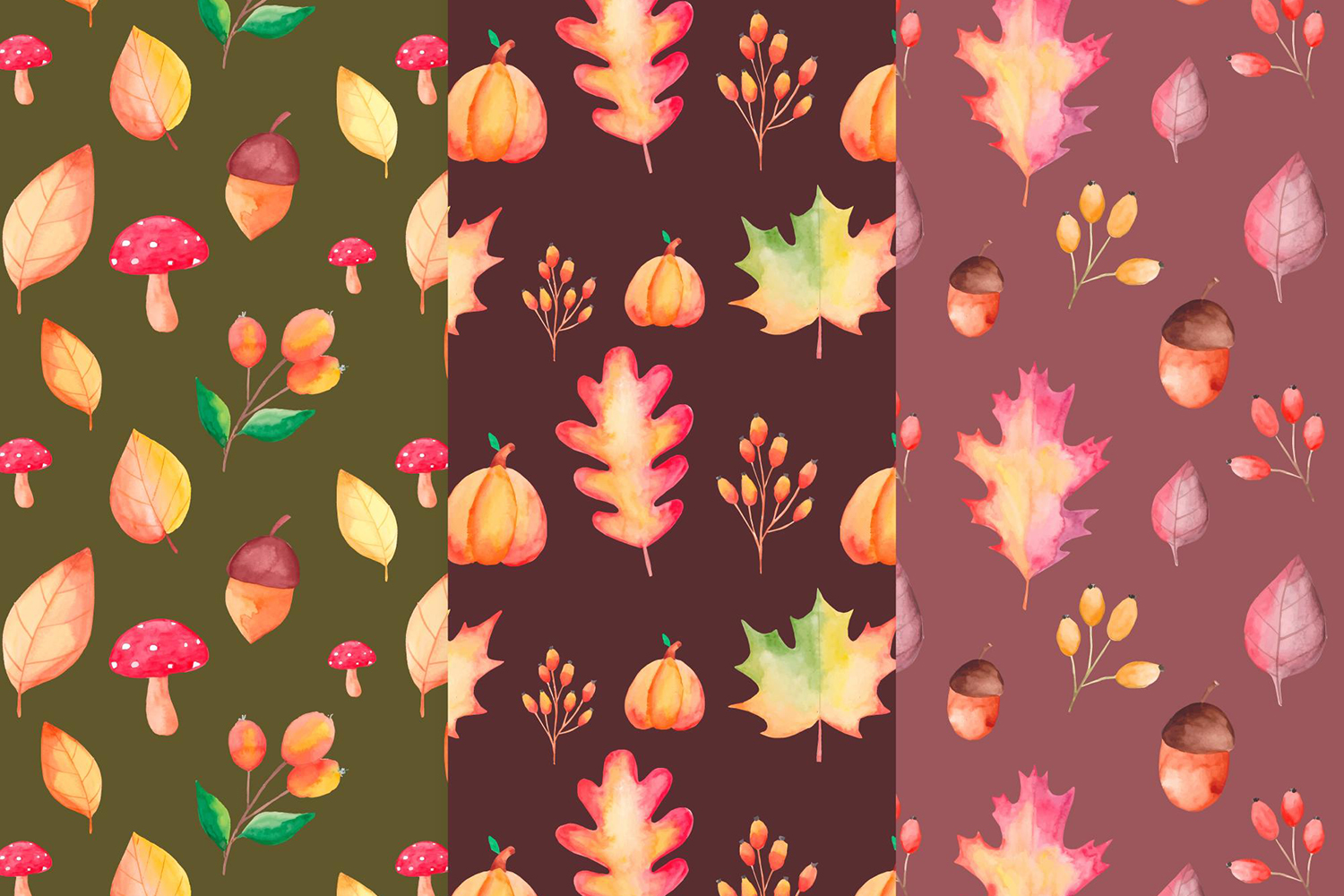 Autumn Pattern Collection is a set of 3 bright interesting patterns that will help you create memorable autumn-themed projects. Use this kit to create cards, posters, invitations, branding, mobile GUIs, prints, and more.