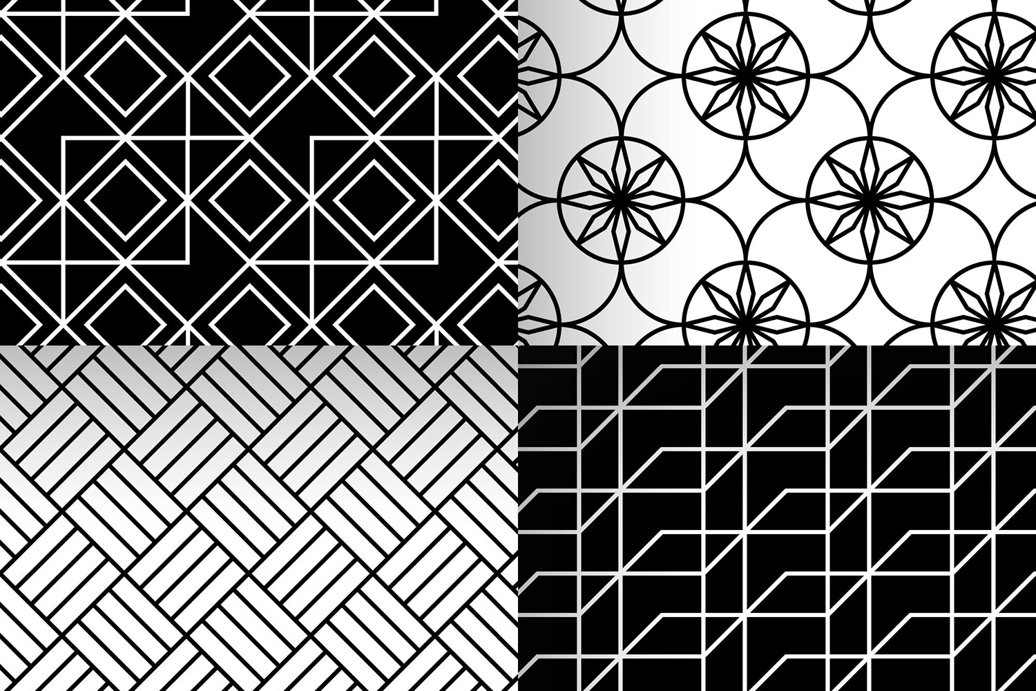 Black and White Geometric Pattern Collection is a set of 4 high-quality vector patterns featuring various geometric shapes. This set is perfect for creating various design projects in an abstract style. These can be abstract posters, cards, invitations, wrapping paper, flyers, prints, and more. Increase your professional level with this interesting quality set.