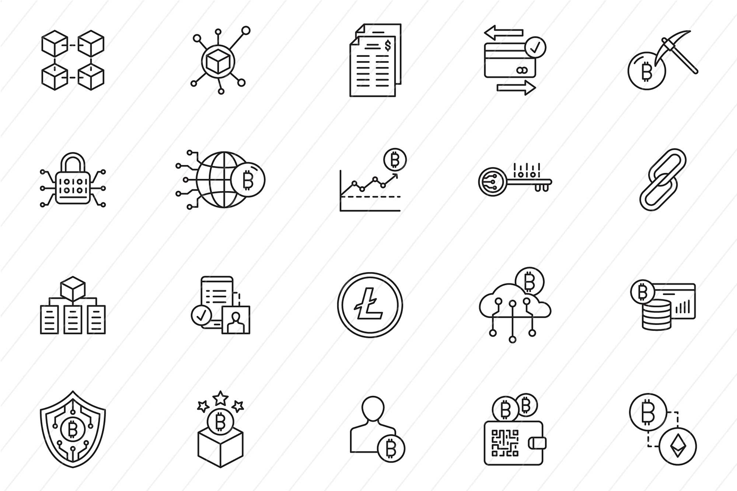 Blockchain Vector Icons is a set of 20 vector modern monochrome icons that depict various subjects and aspects related to the blockchain. You can use this set to implement any of your design projects on the relevant topics. Use this set to create posters, branding, invitations, cards, clothing prints, and more.