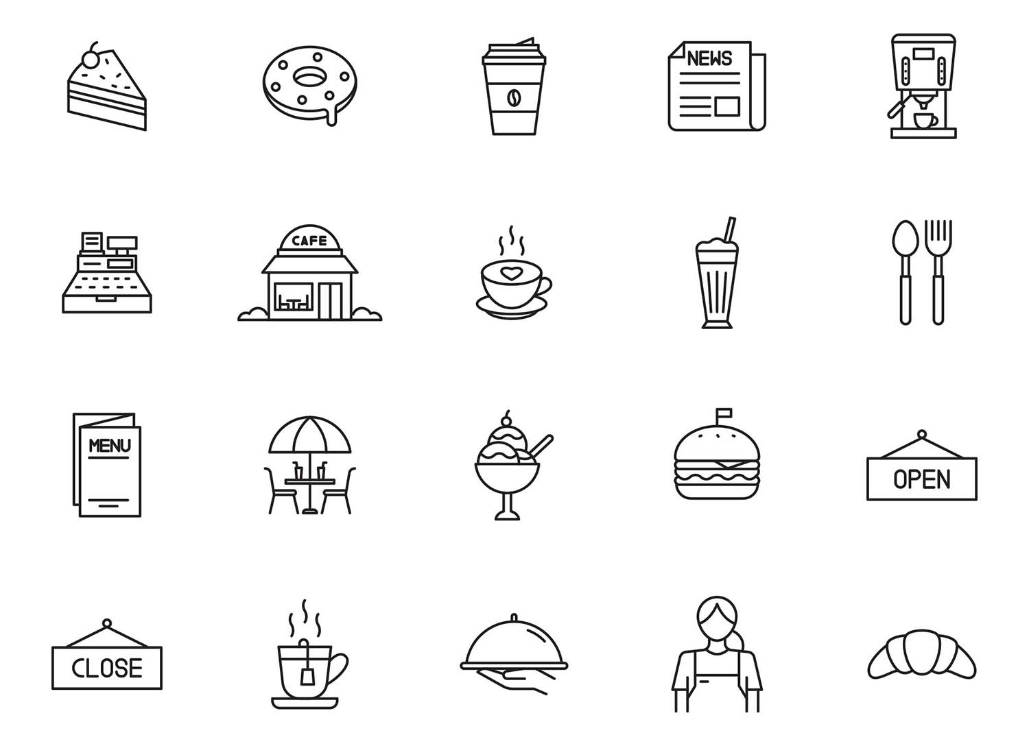 Cafeteria Vector Icons is a set of 20 vector monochrome icons that depict various food, drink, and aspects related to the operation of the cafeteria. You can use this set to implement any of your design projects on the relevant topics. Use this kit to create food posters, branding, invitations, cards, clothing prints, and more.