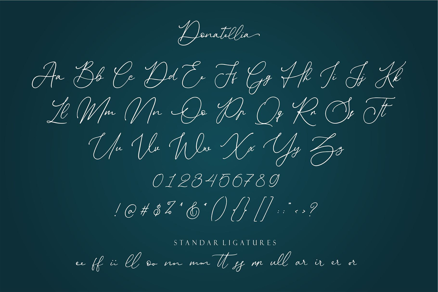 Donatellia Signature Script is a beautiful modern handwritten font that will add elegance and uniqueness to any of your design projects. You can use this font to create posters, cards, wedding invitations, flyers, prints, and more. If you wish to access more features and use them for commercial work please buy the full version.