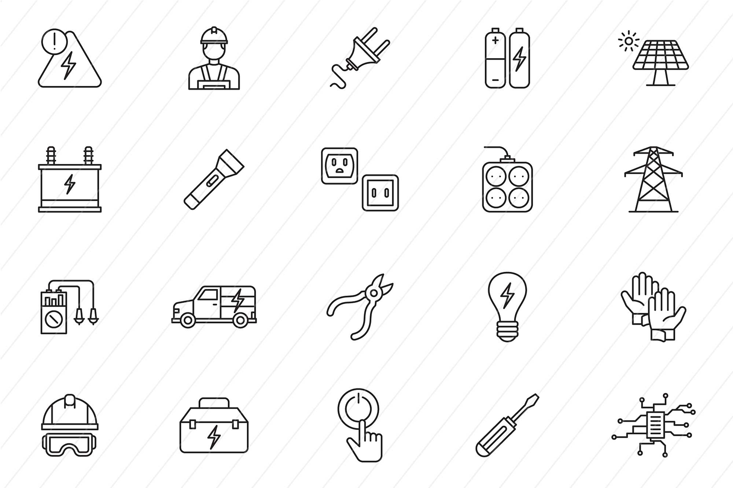 Electricity Vector Icons is a set of 20 vector modern monochrome icons that depict various objects and aspects related to electricity. You can use this set to implement any of your design projects on the relevant topics. Use this set to create posters, branding, invitations, cards, clothing prints, and more.