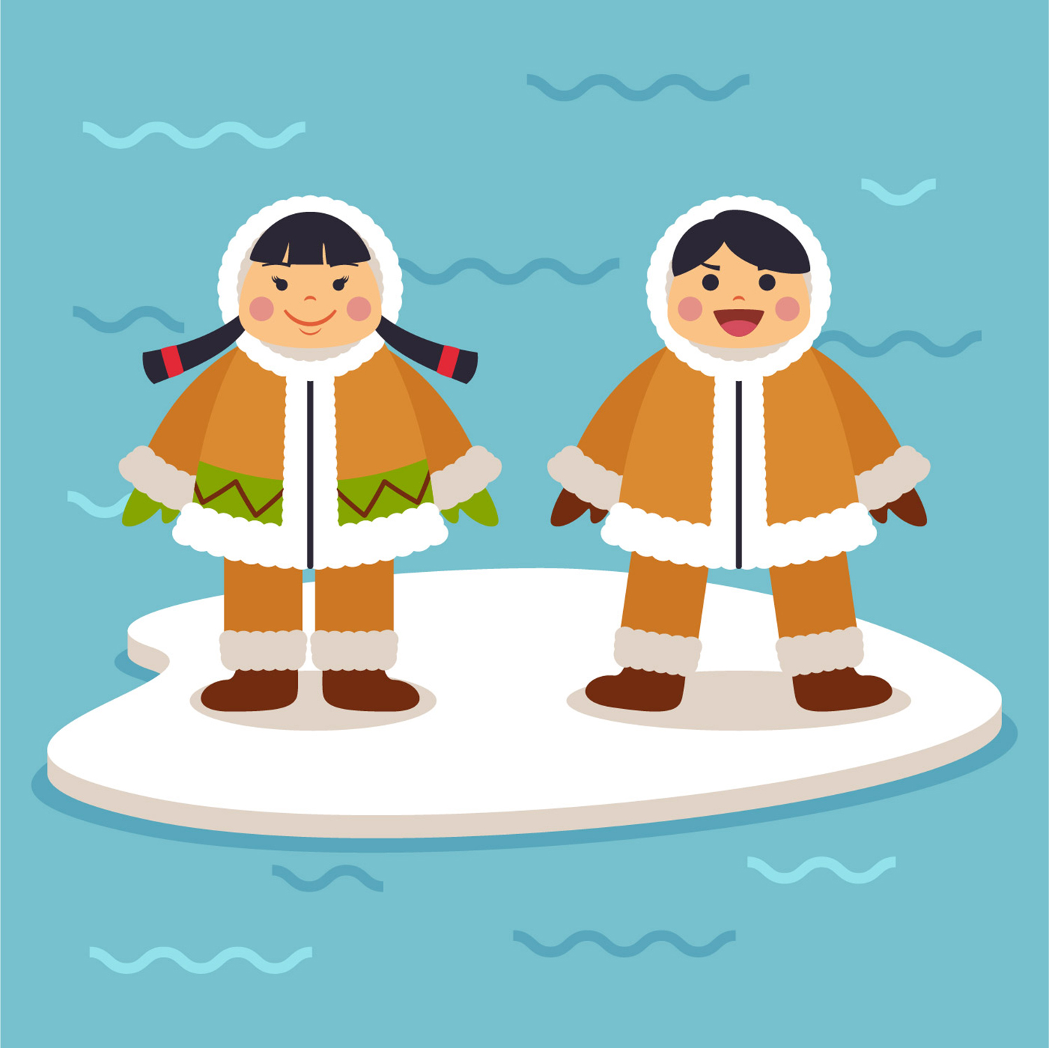 Eskimos Free Vector Illustration is a beautiful bright interesting vector illustration on a winter theme that will fill many of your design projects with a winter mood. This illustration works very well for holiday posters, cards, branding, invitations, prints, and more. Improve your professional level with this vector illustration.