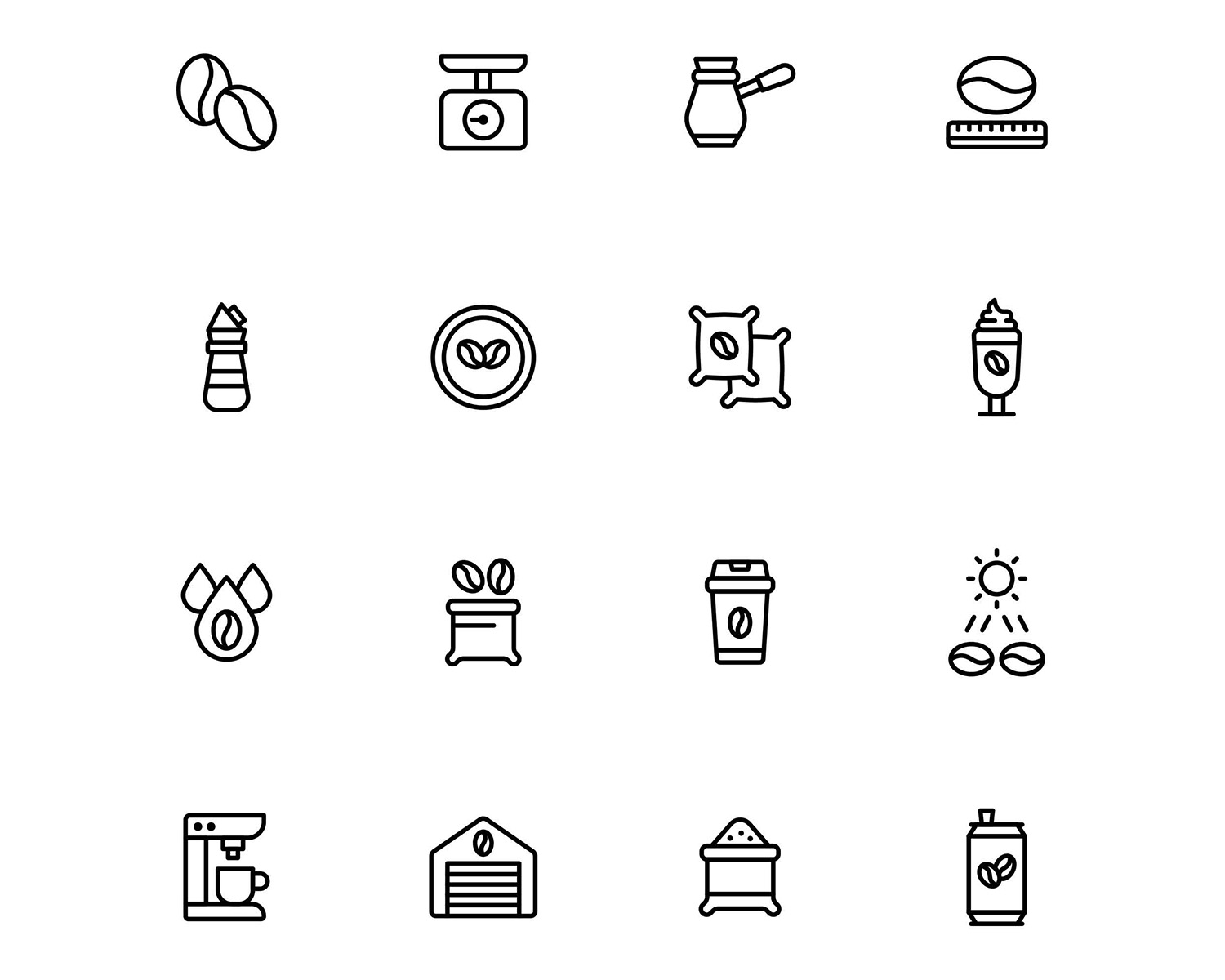 Free Coffee Production Icons is a set of 16 vector monochrome icons that depict various aspects related to the cultivation and production of coffee. You can use this set to implement any of your design projects on the relevant topic. You can use this set to create posters, branding, invitations, cards, clothing prints, and more.