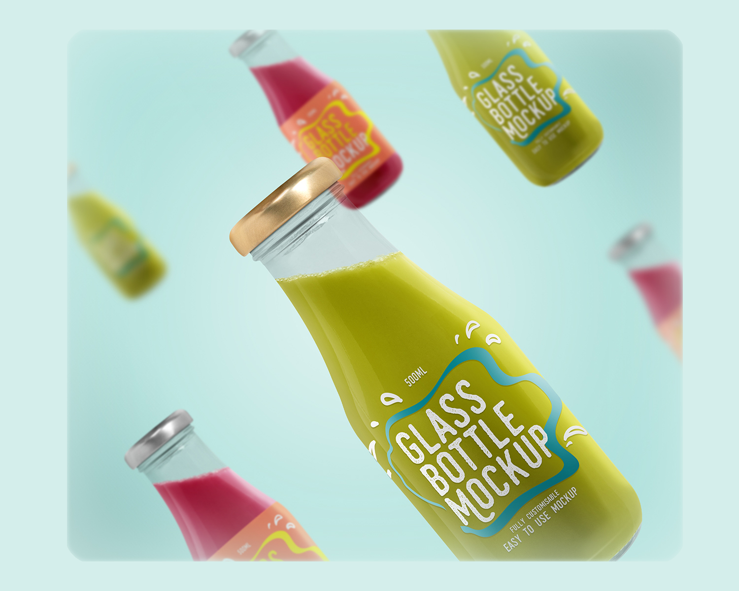 Free Glass Bottle Mockup helps you showcase your bottle label design realistically. There are two label options that you can choose between shrink wrap or clear labels. You can also edit each bottle individually. The mockup is completely free for personal and commercial use. Enjoy it, pals!