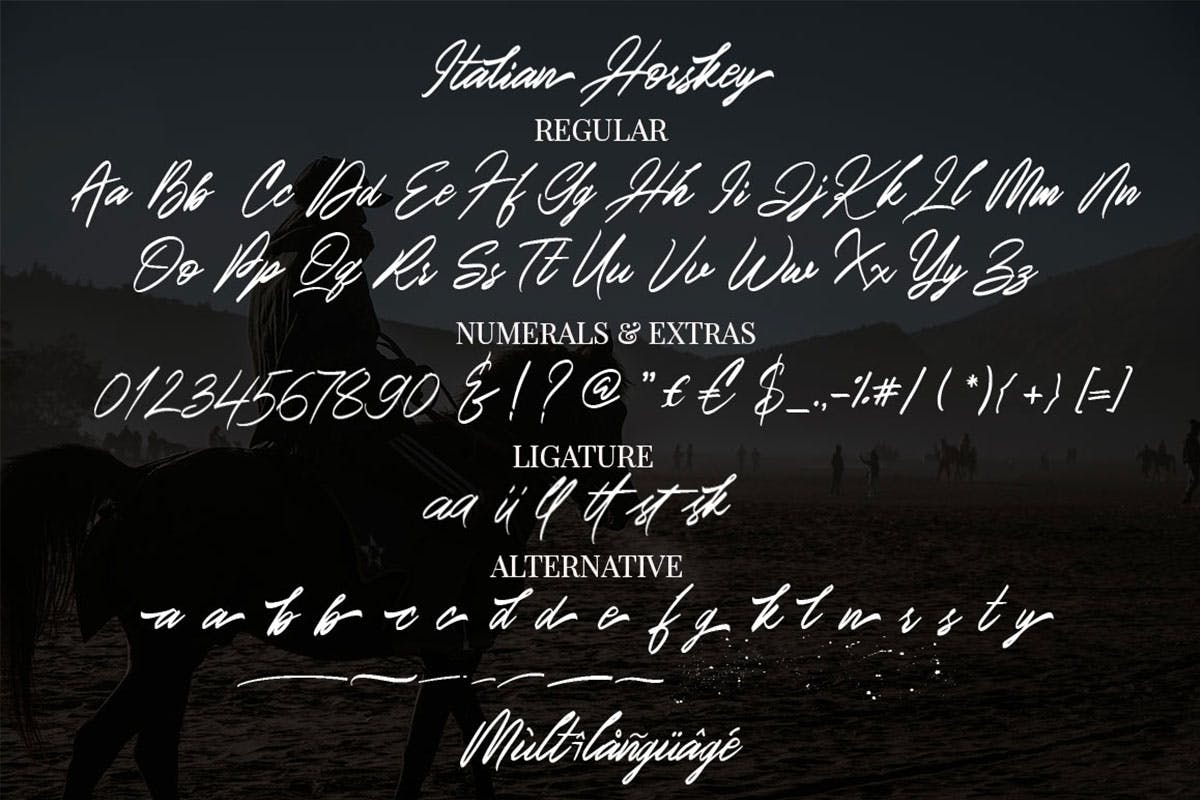 Free Italian Horskey Script Font is a memorable and interesting handwritten font that sets itself apart from other fonts with its elegant calligraphic style and exquisite capital letters. This font is presented in a demo version and will help you create unique design projects and improve your professional level. Use this font to create memorable posters, wedding invitations, cards, branding, flyers, and more.