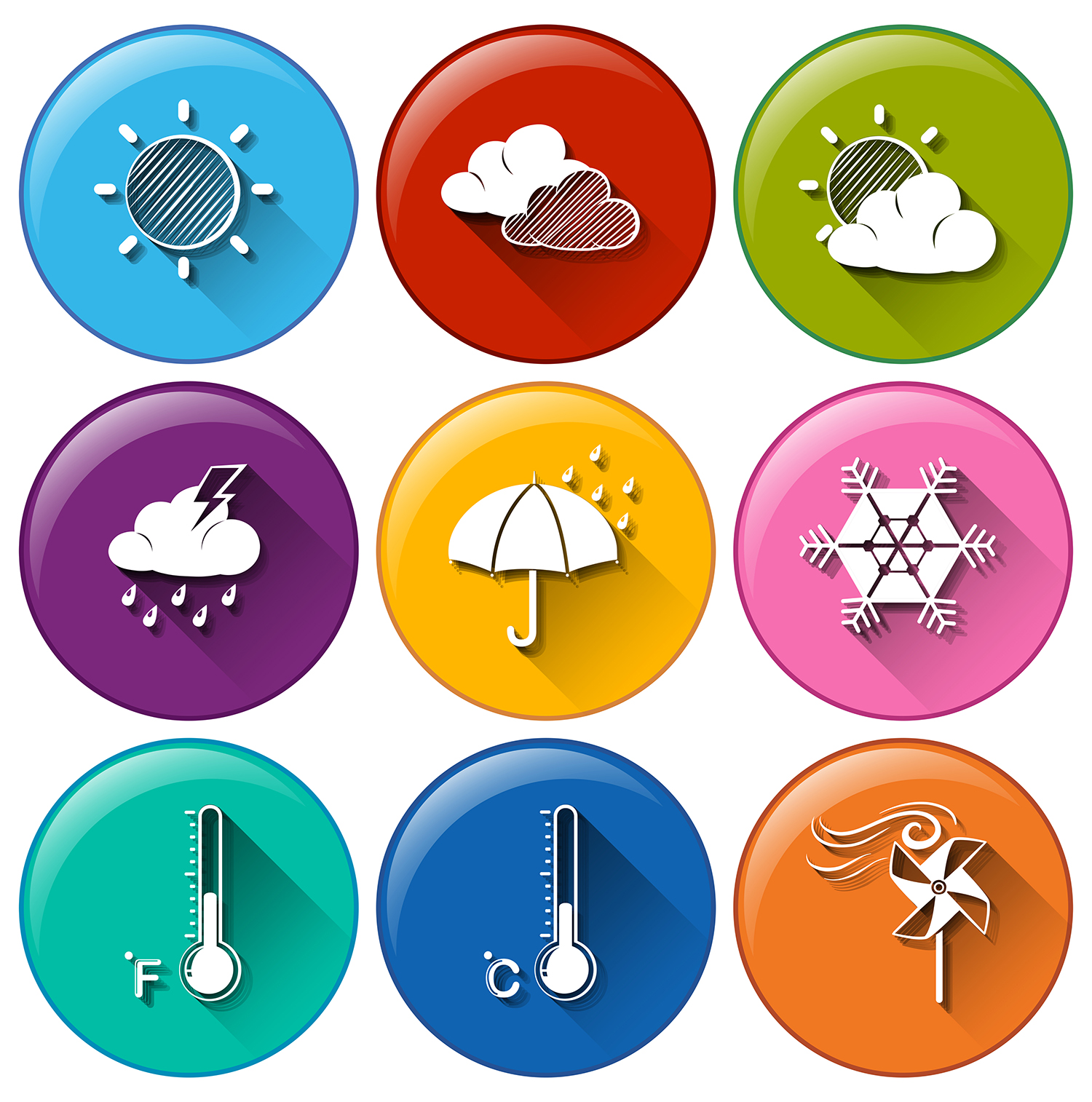 Free Weather Vector Icons is a set of 9 high-quality vector icons made in a minimalist style depicting different weather conditions. This set is perfect for creating various design projects related to the weather. These can be posters, postcards, flyers, prints, and more. Also, this set is well suited for use in the graphical interface of mobile applications on the relevant topic.