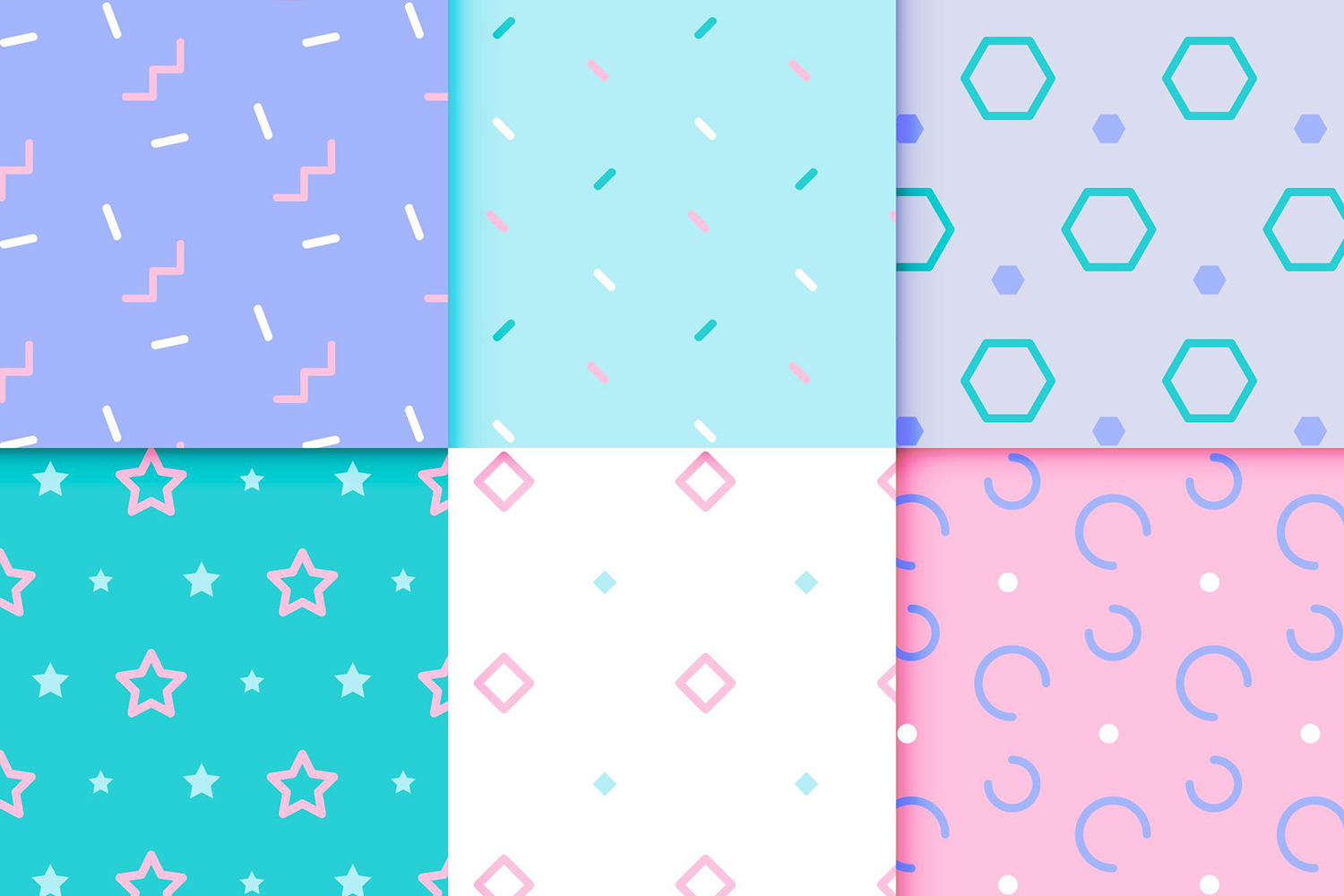 Geometric Memphis Pattern Collection is a set of 6 high-quality vector patterns featuring various geometric shapes. This set is perfect for creating various design projects in an abstract style. These can be abstract posters, cards, invitations, wrapping paper, flyers, prints, and more. Increase your professional level with this interesting quality set.