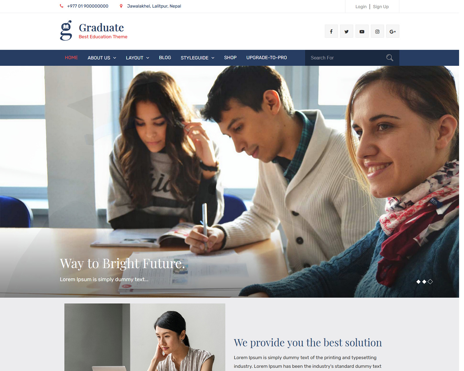 Graduate Multipurpose WordPress Theme is designed for educational websites, school, college, or university websites. This theme is completely responsive, cross-browser, SEO optimized, and professionally designed. Graduate is completely free for personal and commercial use. Feel free to download and enjoy.