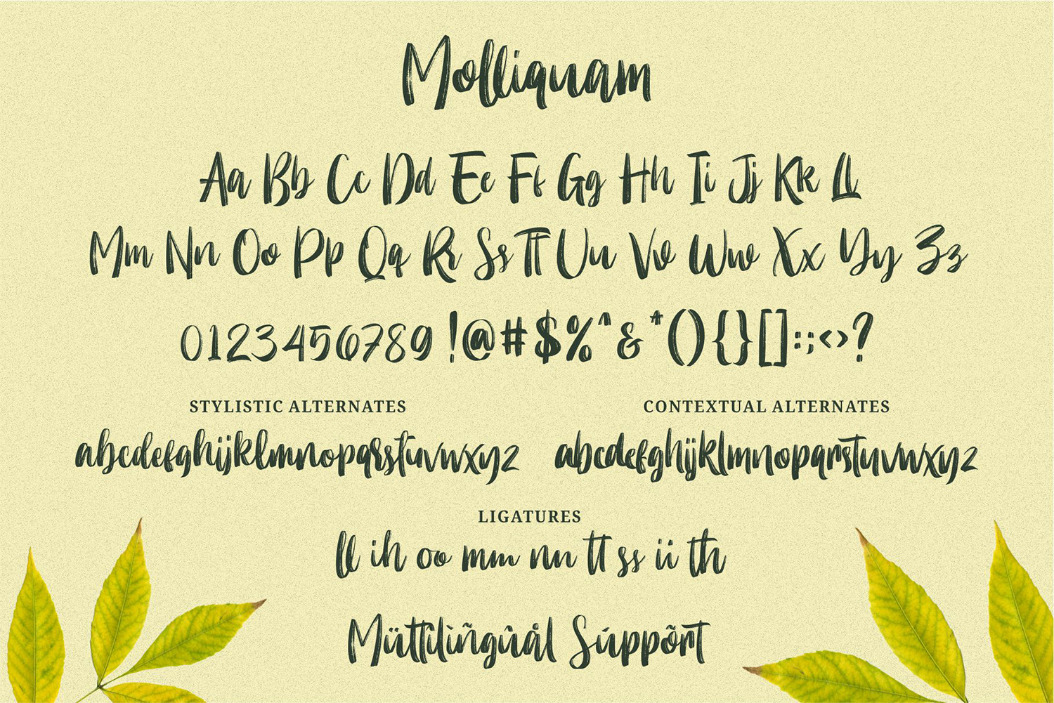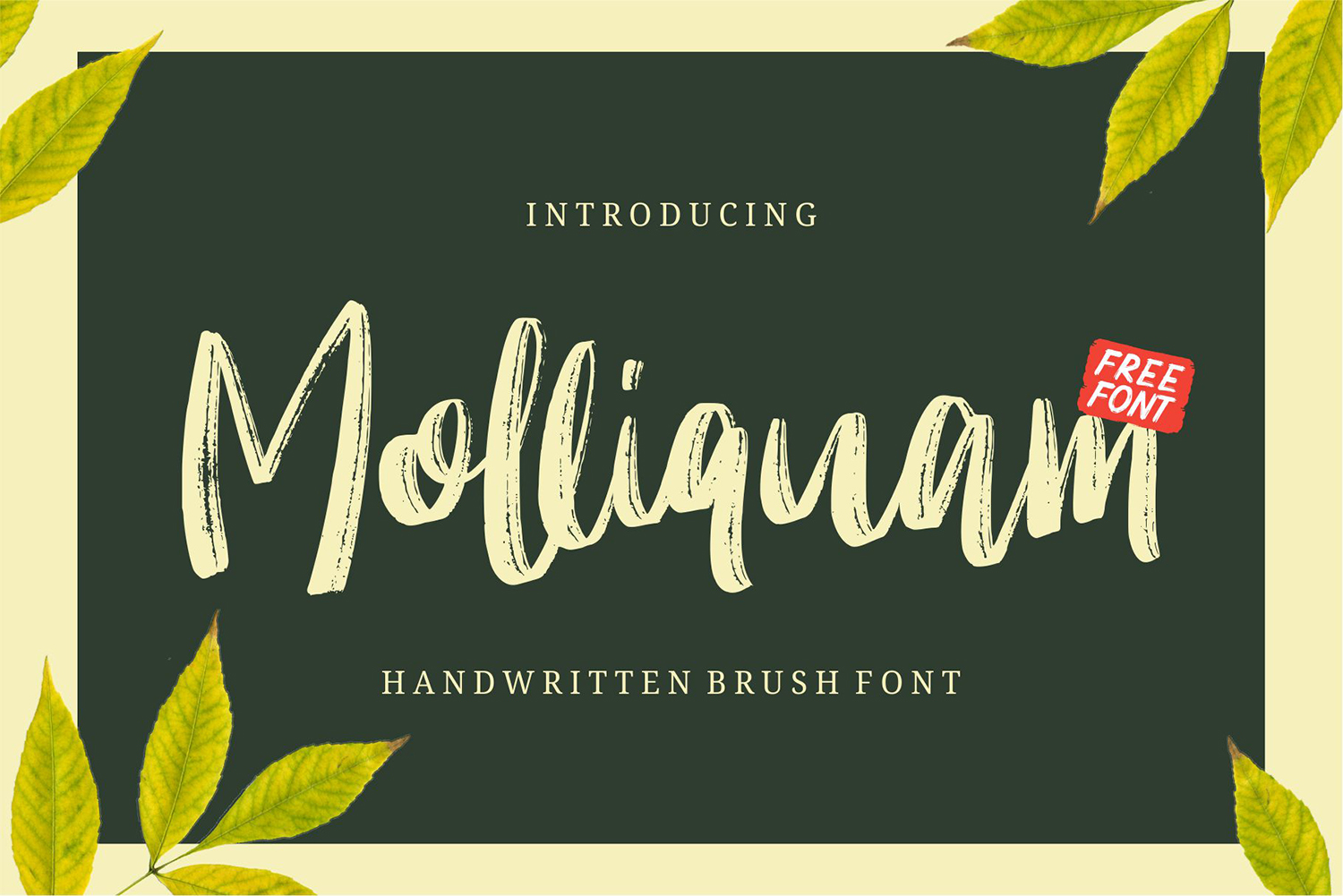Molliquam Free Font is an interesting handwritten font that simulates writing with a brush. This font features elegant curves and is perfect for a variety of design projects such as posters, postcards, flyers, prints, and more. If you wish to access more features and use them for commercial work please buy the full version.