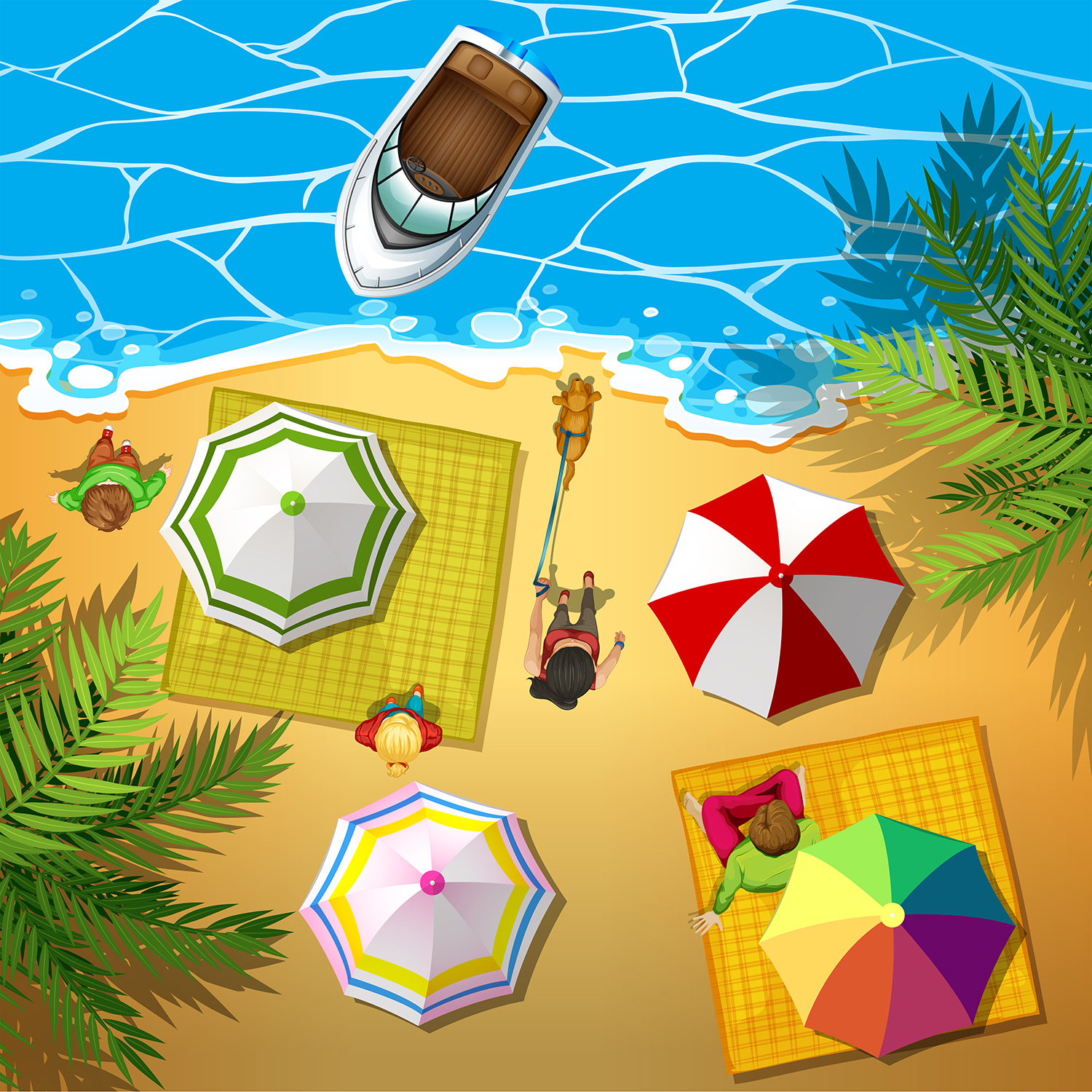 People Relaxing at the Beach Illustration is an interesting high-quality vector illustration that will fill your design projects with a sunny summer atmosphere of rest and vacations. You can use this illustration to create travel posters, cards, invitations, branding, flyers, prints, and more.